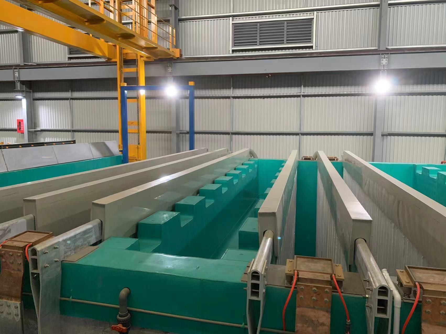 2) Serbatoio di clorazione:100m2/serbatoio × 70A/m2÷0,9 = 7777A/serbatoio