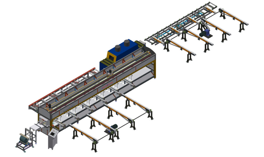 Lo scaffale di selezionamento automatico fornito del sistema di controllo automatico del computer trasporta automaticamente i profili riscaldati ed imballati con carta restringibile allo scaffale di traduzione di stoccaggio tramite il rullo del feltro di potere ed il nastro trasportatore del feltro.